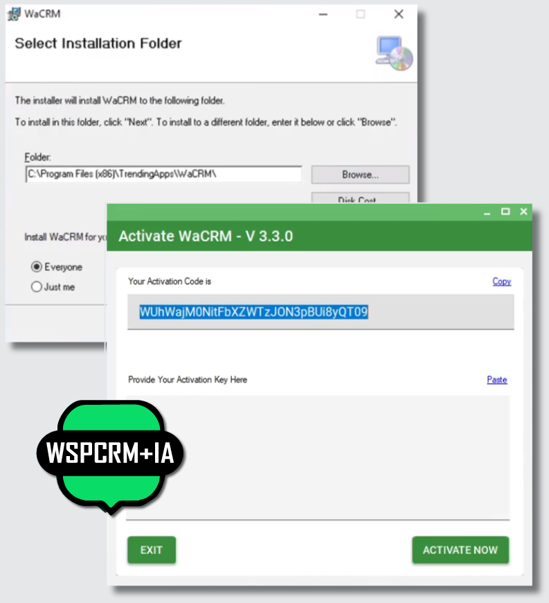 Una vez instalado, haz clic en el acceso directo para abrir WspCRM+ desde tu escritorio. Mientras no hayas activado WspCRM+, se mostrará un código donde dice «You Activation Code is…».